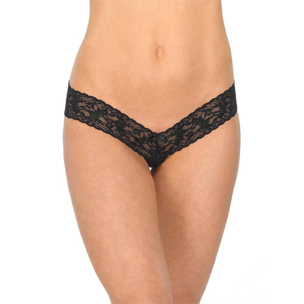 - Crotchless one-size thong in signature stretch lace with bow